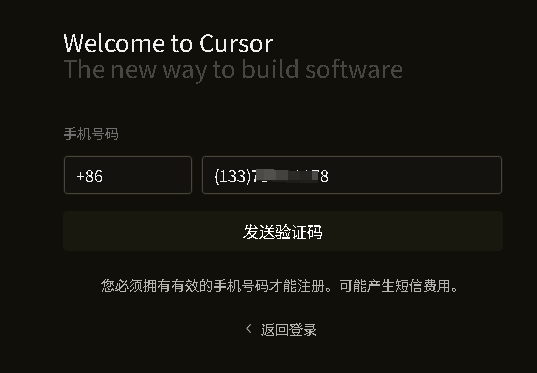 下载Cursor需要登陆,首次注册 Cursor 时,将默认区号 +1 改为 +86,输入 11 位手机号即可完成验证!😊 ##### 步骤 1:进入手机号验证环节 在注册流程中,系统会提示你输入手机号码以接收验证码。  你会看到一个输入框,通常旁边有一个国家/地区代码的下拉菜单。默认情况下,可能会显示漂亮国区号 +1。 ##### 步骤 2:将区号改为中国大陆的 +86 点击国家/地区代码的下拉菜单。 找到“China”或“中国(+86)”选项,选择它。 注意:确保区号从 +1 更改为 +86,这是国内的电话区号。 在手机号输入框中,输入你的 11 位手机号码(无需在前面加“0”)。 例如:如果你的手机号是 13812345678,直接输入 13812345678。 ##### 步骤 3:接收并输入验证码 点击“发送验证码”按钮,系统会向你的手机发送一条包含验证码的短信。 检查你的手机短信,找到来自 Cursor 的验证码(通常是 6 位数字)。 将验证码输入到注册页面对应的输入框中。 点击“验证”或“下一步”,完成手机号验证。 步骤 4:完成注册 验证通过后,系统会引导你完成剩余的注册步骤(如果有)。 成功注册后,你就可以登录 Cursor,开始使用它的强大功能啦!🎉
